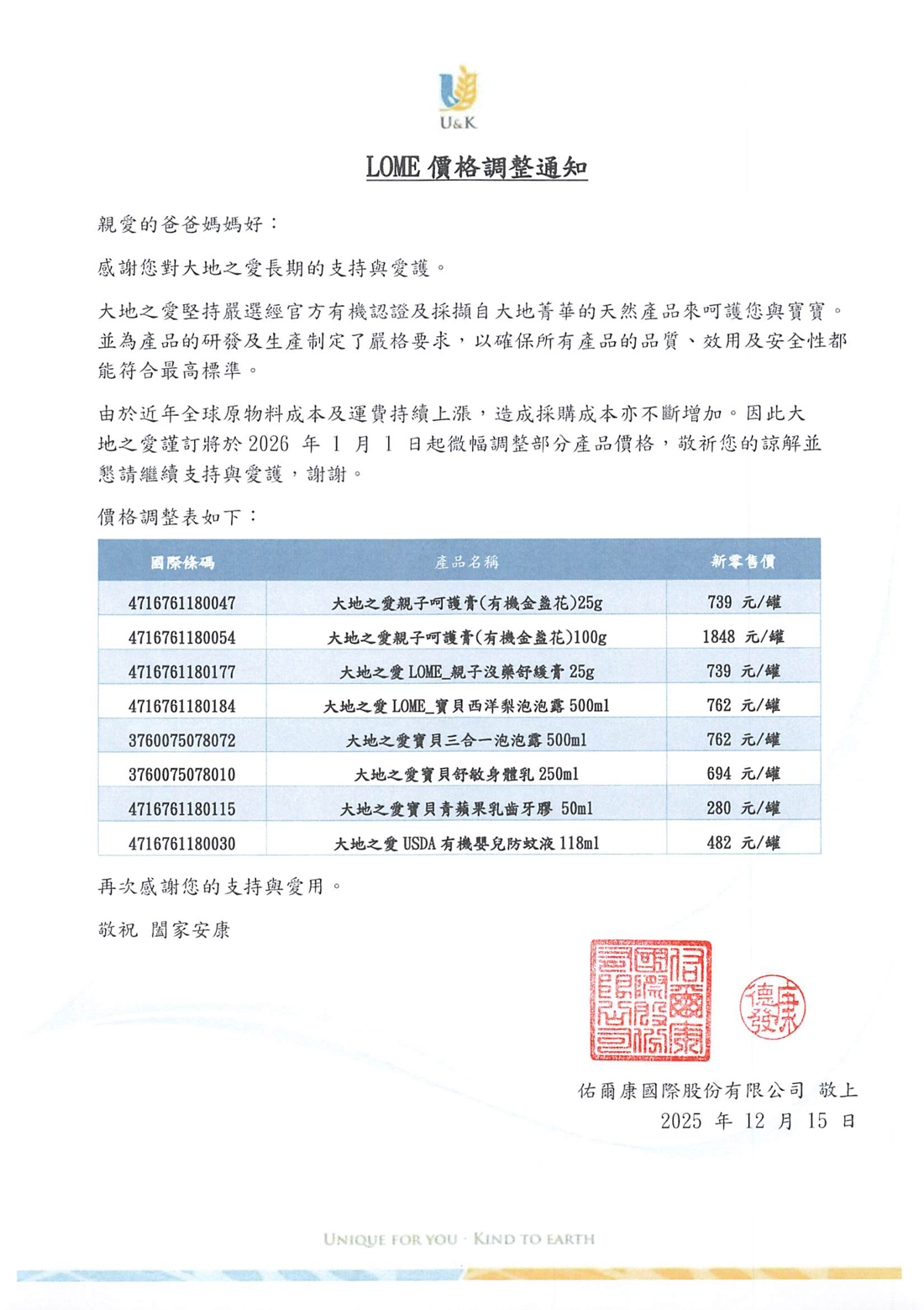 LOME價格調價公告
