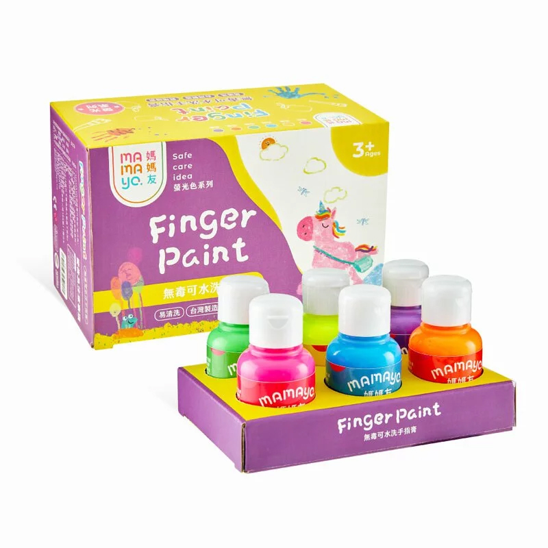 【全額Q兌】mamayo 可水洗幼兒無毒手指膏六色組-螢光色(110Q兌換)