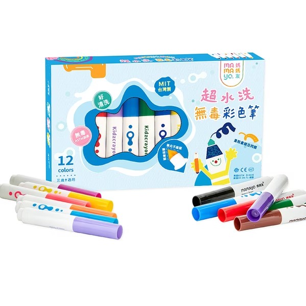 【全額Q兌】mamayo 12色超水洗彩色筆(68Q兌換)